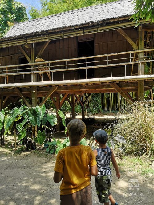 Außerdem gibt es ein laotisches Dorf, in dessen Zentrum ein originalgetreu nachgebautes laotisches Haus steht und ortstypische Pflanzen wie z.B. Bananen, Taros und Zuckerrohr wachsen.