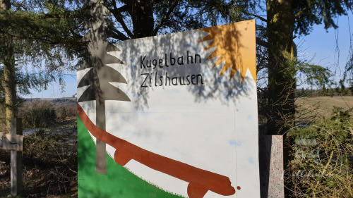 Ausgangspunkt der Wanderung ist der Wanderparkplatz in Zilshausen, der auch gleichzeitig der Startpunkt der Kugelbahn ist. Hier kann an schönen Tagen recht viel Betrieb sein. Man kann dann das Auto auch am Rand des Feldwegs abstellen.