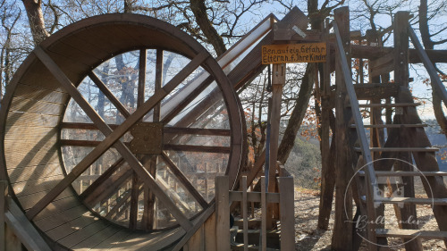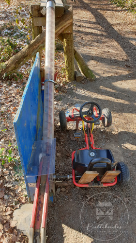 Diese erstreckt sich auf einer Länge von ca. 400 Metern und verläuft entlang der Traumschleife Dünnbach. Unterwegs müssen auch einige Stufen überwunden werden, damit die Kugeln wieder etwas an Höhe gewinnen und ihre Talfahrt fortsetzen können. Mal muss man die Kugeln mit einem Kettcar, das an eine Förderschnecke angeschlossen ist, hochtreten, mal muss man sie von Hand hochkurbeln. Highlight ist aber sicherlich das große Hamsterrad, mit dessen Hilfe die Kids ein Förderband antreiben. Die Kugelbahn ist wirklich außerordentlich liebevoll gestaltet und bereitet nicht nur den Kindern eine riesen Freude.