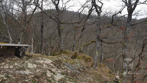 Am Steinbruch taucht der Dünnbachpfad in einen abwechslungsreichen Mischwald ein und führt sanft talwärts. Nach einem scharfem Rechtsknick erreicht man schon bald einen Aussichtspunkt, an dem man über einen kleinen Stichpfad eine Holzbank auf einer Felsrippe erreichen kann und einen tollen Blick ins Tal hat.